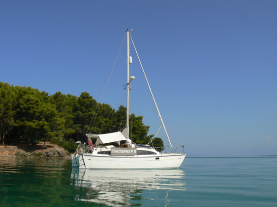 It was the last year of the 20th century that after years of the normal pressures of life we finally realised our long time dream of freedom afloat. We found ourselves in Falmouth boarding Sundowner with just a couple of bags each, a dog and one of our sons. Unfortunately being weather bound before our trip to our new home port of Weymouth we found ourselves in the charming town of Falmouth existing on extra cold Guinness and pasties alone! Sadly Al had to return by train for work before we set sail.